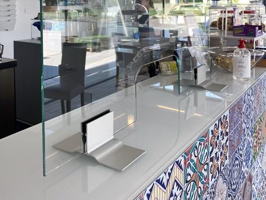 Компания Aluvetro разработала систему Safe — стеклянные барьеры для защиты от биологических агентов, которые легко устанавливаются без крепежа.