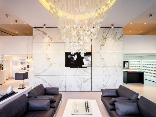 В выставочном зале представлены новейшие продукты Cosentino и Lladró. Архитекторы и дизайнеры могут изучить и применить материалы в своих проектах, используя интерактивные решения.