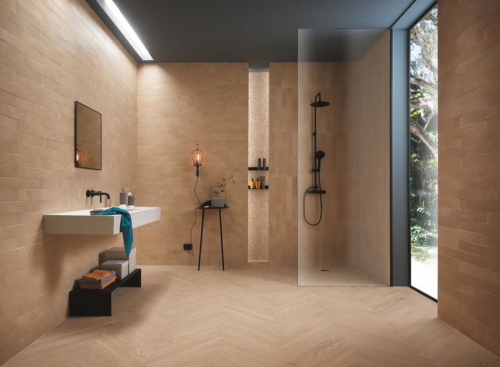 Коллекция Connection by Fap Ceramiche предлагает уникальный подход, сочетая дерево, камень и шпатлеванную смолу. Эти материалы создают естественную палитру, которая идеально подходит для современных интерьеров.