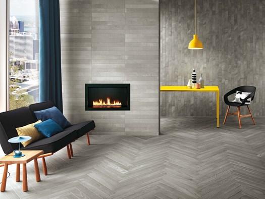 Коллекция Connection включает дерево, камень и шпатлеванную смолу, создавая естественную палитру для интерьеров.