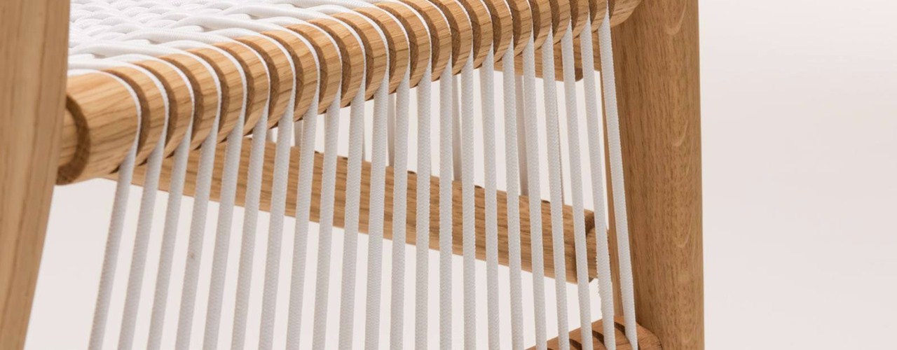 Мебель из коллекции Loom отличается прочным полиэстеровым шнуром, возможностью индивидуальной настройки цвета и использованием массива дерева.