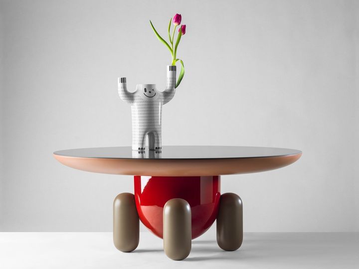 Кресло Dino, вдохновленное формами динозавров, отличается органичными линиями и яркими цветами. Журнальные столики Explorer напоминают сладости и привлекают внимание своей необычной формой.
