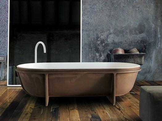 Коллекция включает в себя отдельностоящие ванны и умывальники из Cristalplant Biobased® с металлической кортеновской отделкой. Это придаёт изделиям уникальный индустриальный вид.