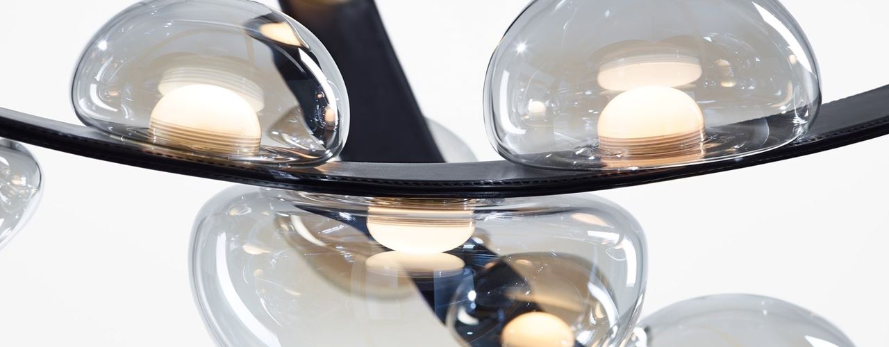 В светильниках Dew Drops используются хрусталь и инновационные материалы, такие как веганская кожа.