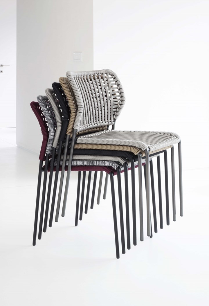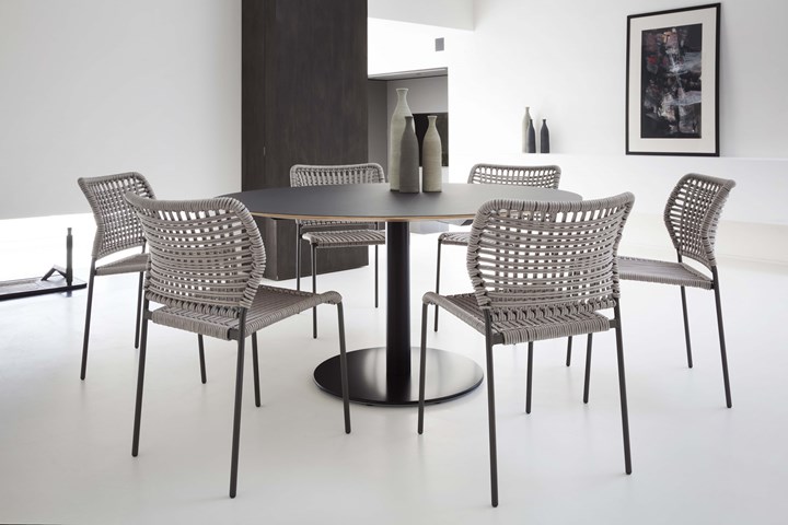 Коллекция Corda предлагает универсальные решения для интерьера. Она включает в себя стулья, кресла и табуреты, выполненные из окрашенной стали и верёвки. Такой выбор материалов делает их устойчивыми к атмосферным явлениям, а также обеспечивает долговечность.