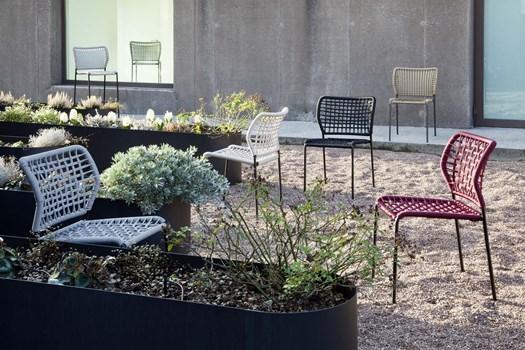 Коллекция Corda предлагает универсальные решения для интерьера. Она включает в себя стулья, кресла и табуреты, выполненные из окрашенной стали и верёвки. Такой выбор материалов делает их устойчивыми к атмосферным явлениям, а также обеспечивает долговечность.