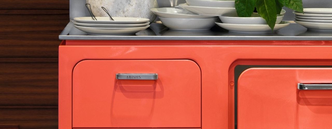 Кухни Abimis предлагают разнообразные модели, где коралловый используется как для фасадов, так и для мелких деталей. Интересны варианты, где верхние шкафы выполнены в коралловом, а нижние – в нейтральных оттенках.