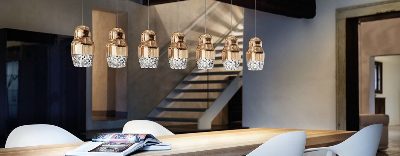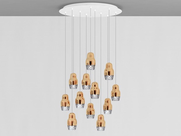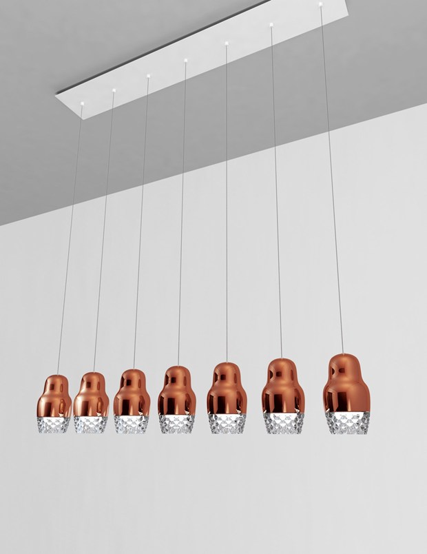 Коллекция Fedora вдохновлена русской традицией и включает подвесные светильники с алюминиевыми и стеклянными элементами. Доступна в цветах металлик бронза и розовое золото.