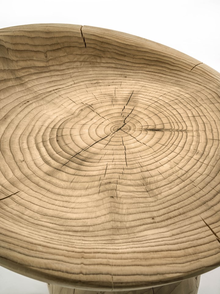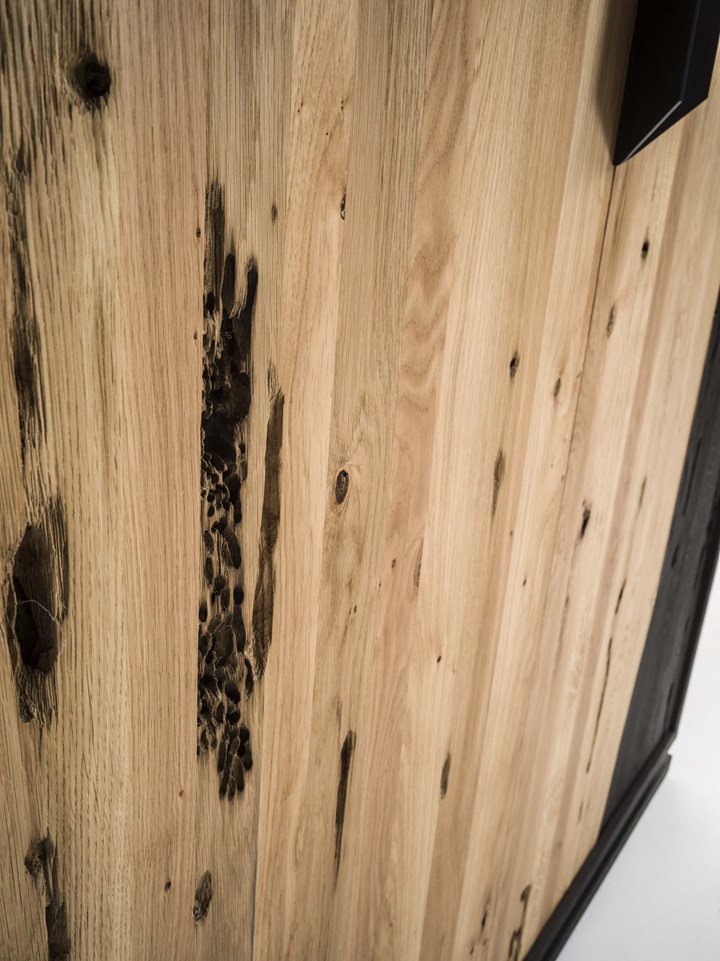Серия Fire and All Around отличается использованием дубовых столбов из Венецианской лагуны, которые превращаются в стильные элементы мебели. Это решение подчеркивает красоту и долговечность природных материалов.