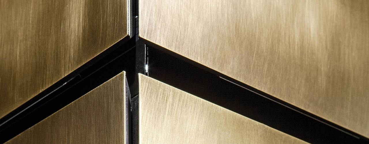 Коллекция Natural Skin предлагает кухонные модули с латунными отделками, которые придают интерьеру элегантность и функциональность.