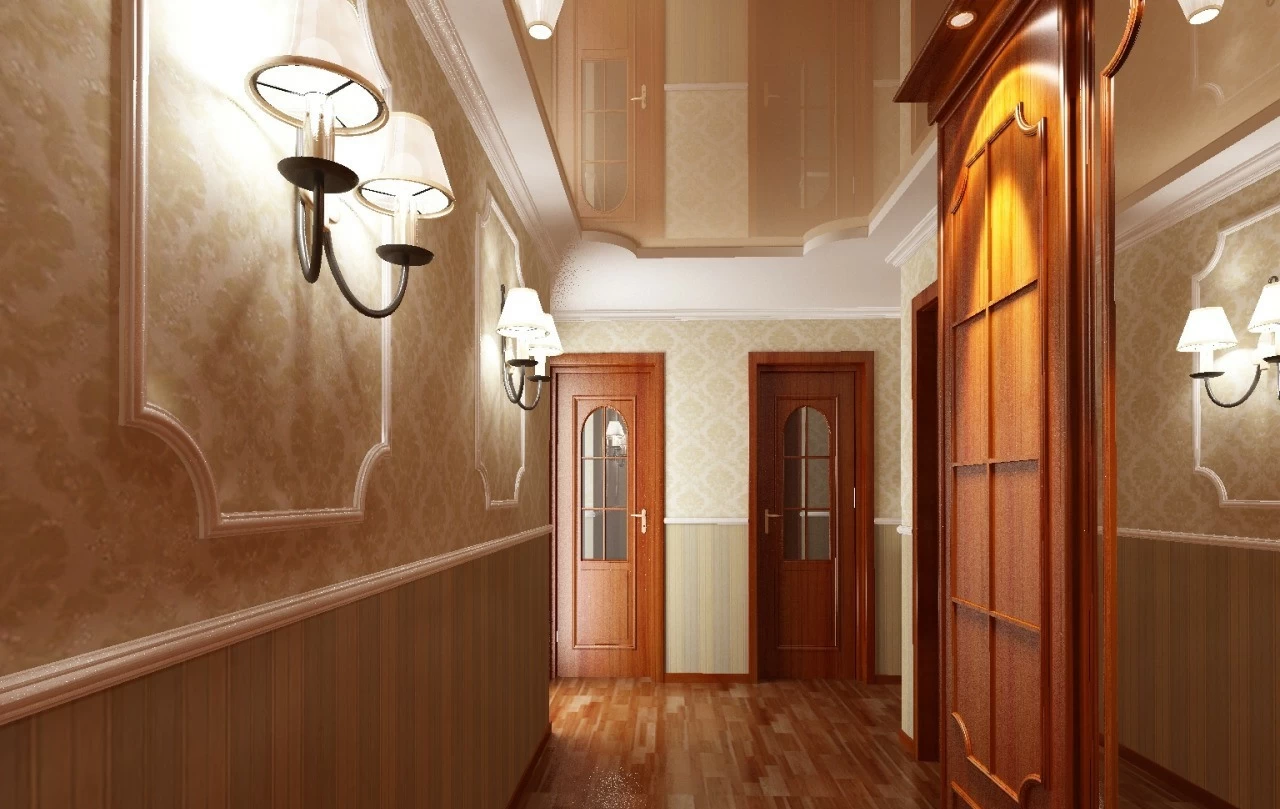 Учитывайте площадь и высоту коридора, а также стиль интерьера. Глянцевые потолки увеличивают пространство, матовые подойдут для высоких потолков.