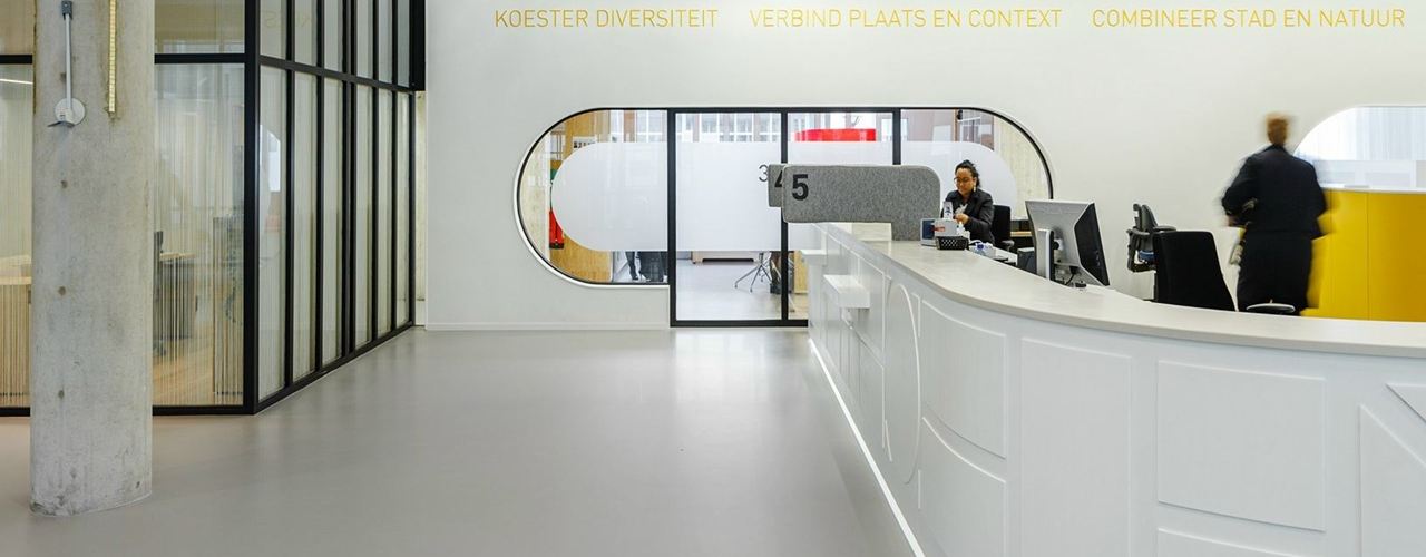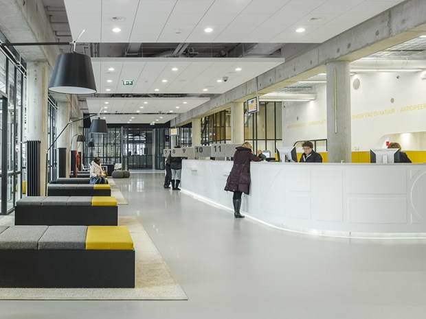 HI-MACS® акриловый камень позволяет создать светлые и динамичные пространства, подчеркивая уникальные элементы архитектуры. Рассмотрим, как это применено в ратуше Алмере.