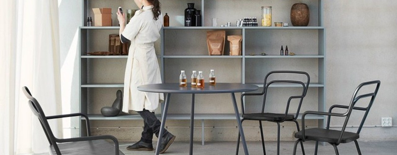 Коллекция Kaffe включает штабелируемые стулья, столы и двухместные скамьи, которые удобны для дома и улицы.