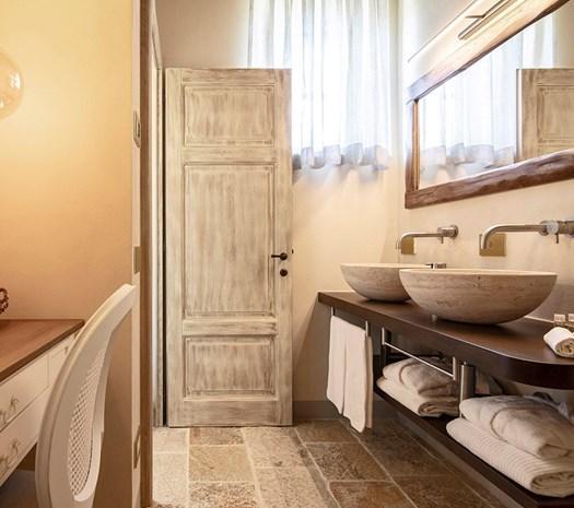 В проекте Capanna Suites в Тоскане коллекция Stiriana используется для создания уникальных ванных комнат. Встроенные раковины и стильные смесители подчёркивают элегантность пространства.