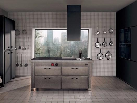 Minacciolo предлагает инновационные решения для кухни Minà, включая покрытие из оксидированной стали, которое подчеркивает индустриальный стиль и высокие технологии.