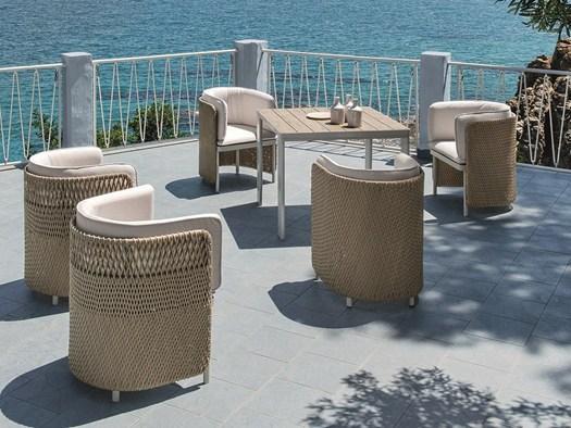 Коллекция включает в себя элементы из алюминия и тика, дополненные синтетическими волокнами, которые придают мебели уникальный внешний вид и долговечность.
