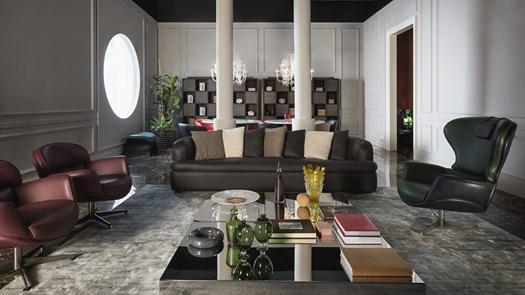 Коллекции Mascheroni предлагают уникальные смеси фактур, форм и материалов, сочетая мрамор, дерево и кожу в смелых дизайнерских решениях.