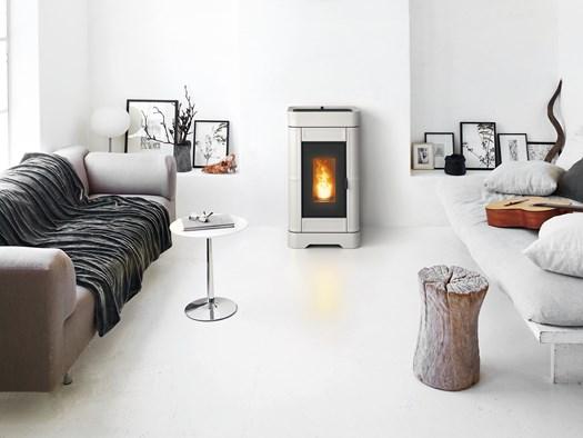 Regina — печь на гранулах с керамическим покрытием, которая идеально вписывается в современные минималистичные интерьеры. Также оснащена системой удаленного управления.