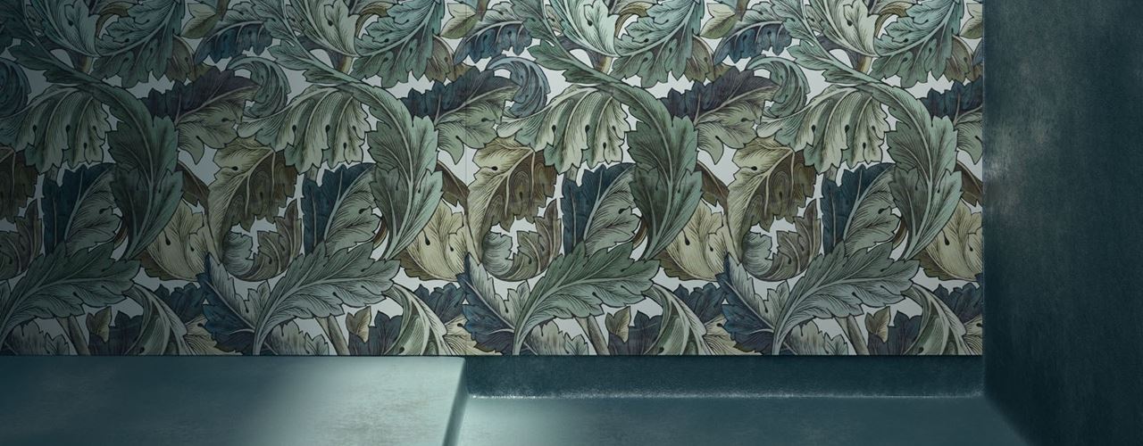 Это уникальный дизайн, вдохновленный классическими обоями и выполненный из современного керамогранита.