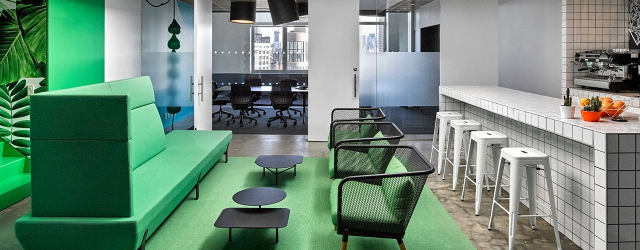 В Нью-Йорке Viccarbe реализовал проект в офисах Barrows, где использованы элементы ар-деко, создающие уникальную атмосферу.