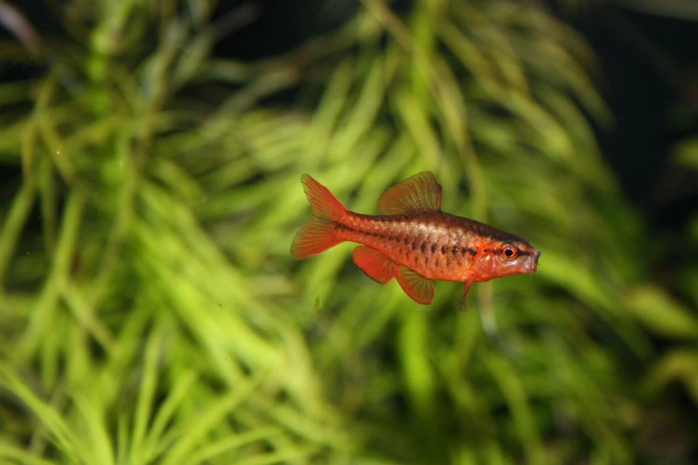 Вишнёвый барбус — миролюбивая и компактная рыбка, подходящая для небольших аквариумов. Обеспечьте простор для плавания и растительность.