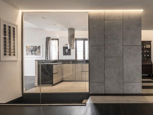 В проекте Ritmonio использованы красные акценты в ванной комнате, которые выделяют детали и создают уникальный стиль. Смесители серии Haptic подчеркивают современность и функциональность интерьера.