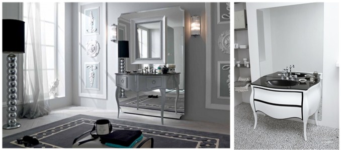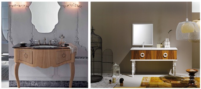 Неотъемлемой частью такого комплекта станет квадратное зеркало, выполненное в том же стиле, что и столешница.