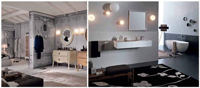 Набор меблировки для ванной комнаты от итальянского производителя Ипсилон представлен в виде встроенной столешницы и дополнительных аксессуаров, которые можно подобрать в соответствии с интерьером помещения.
