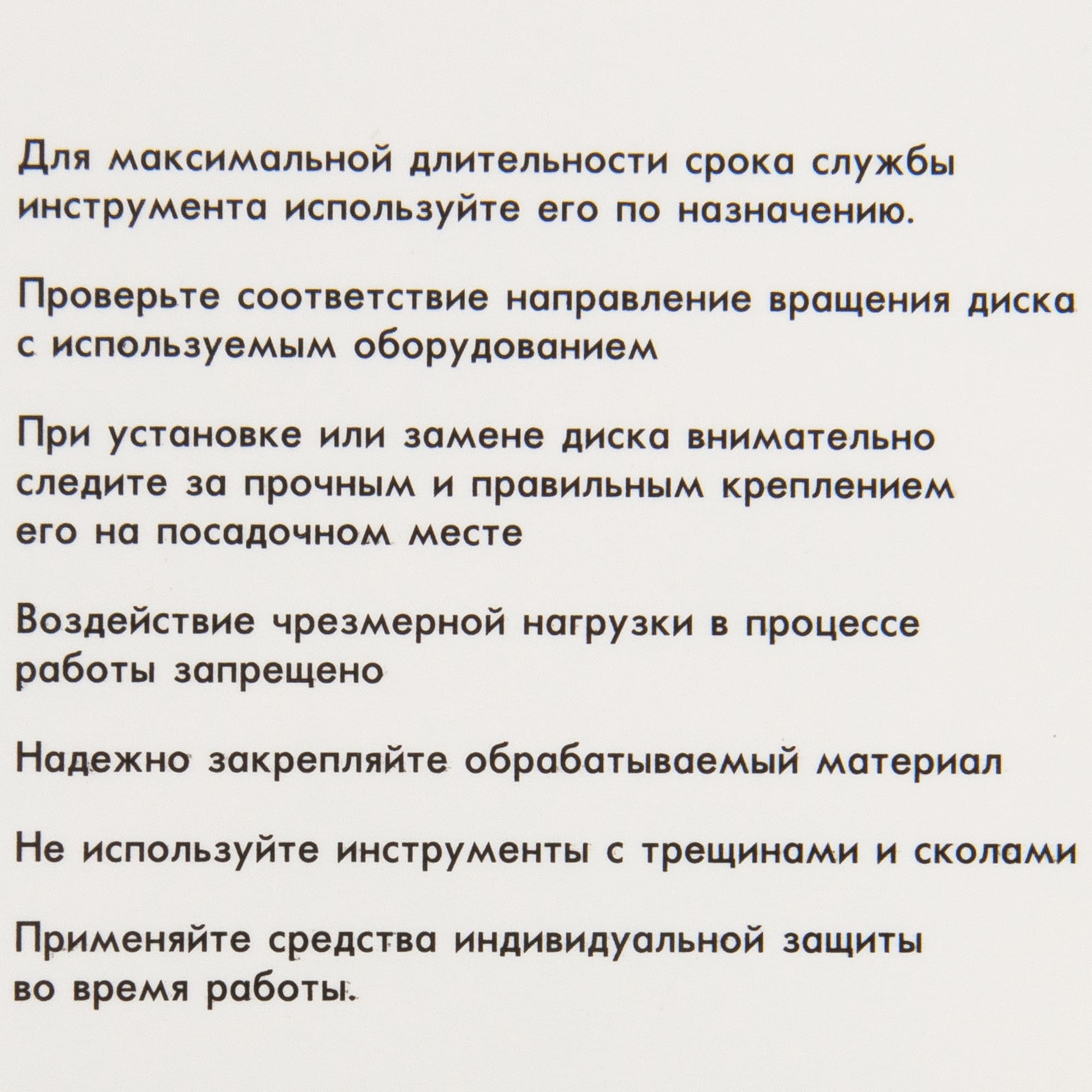Для достижения наилучшего результата используйте диск на рекомендованной скорости и избегайте перегрева инструмента. Регулярно проверяйте состояние диска перед работой.