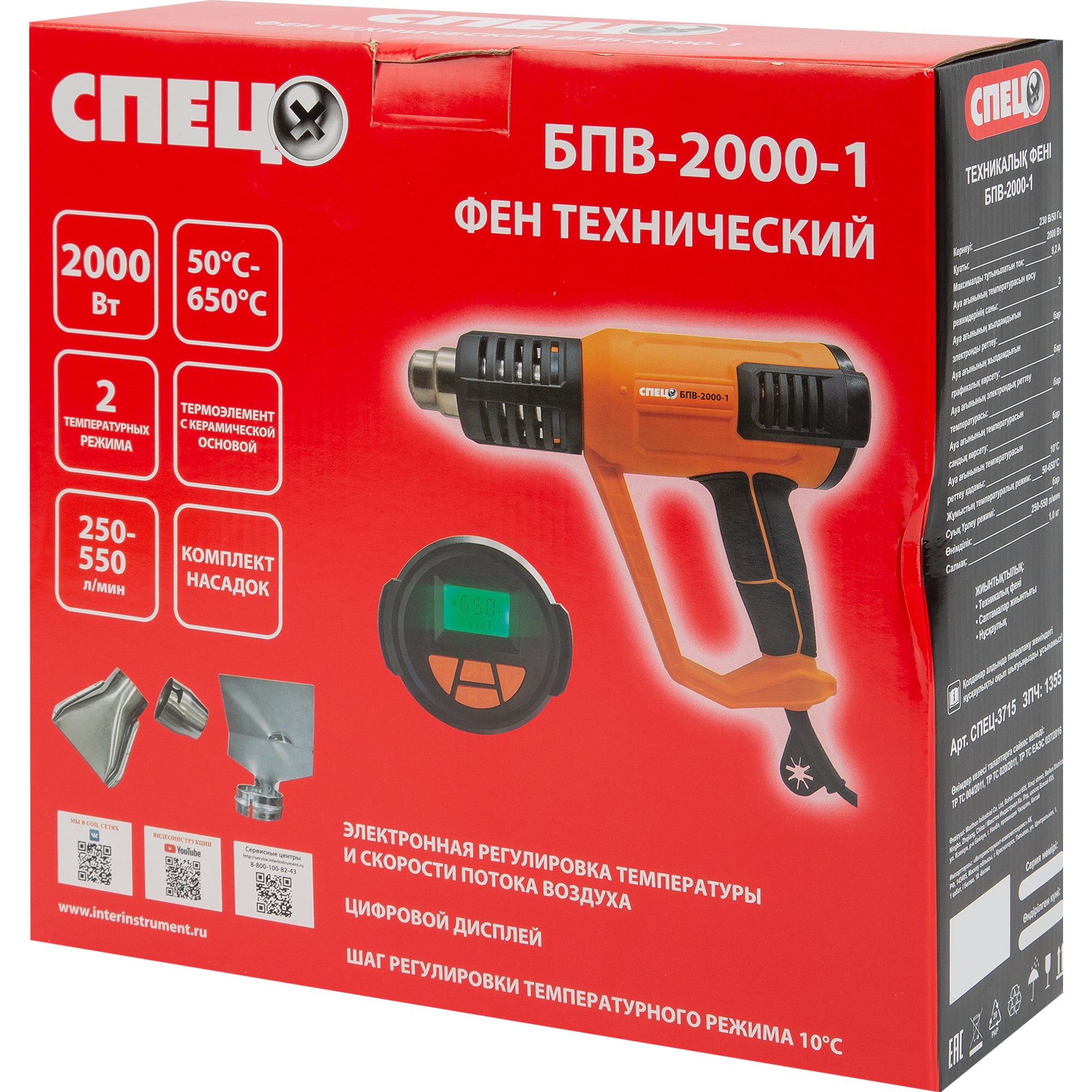 Технический фен СПЕЦ БПВ-2000 с цифровым дисплеем и насадками 84735413 STLM-0054382