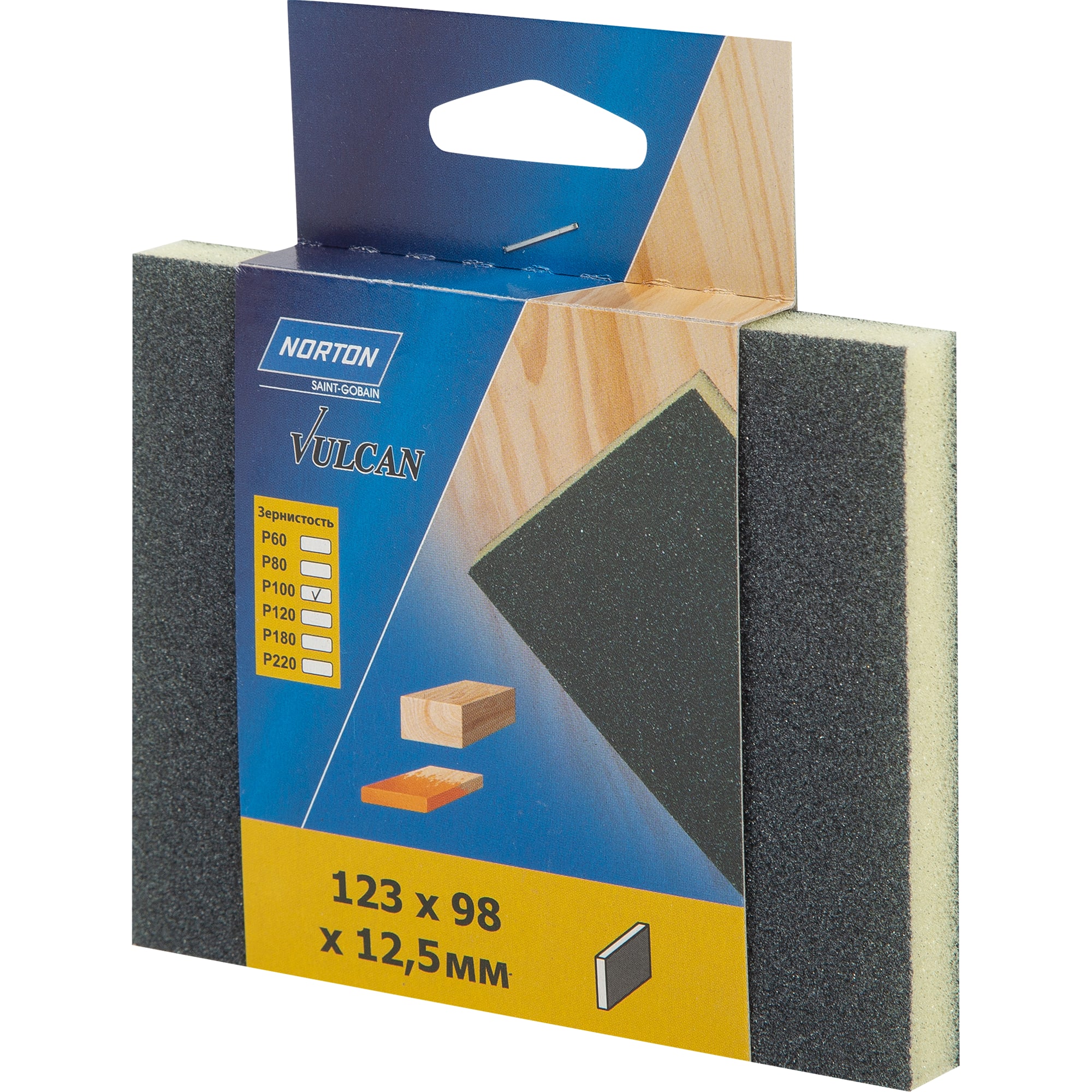 Губка абразивная Norton предназначена для ручной шлифовки поверхностей из дерева и металла. Абразивный слой состоит из твердых угловатых кристаллов карбида кремния. Шлифовальный инструмент на основе мягкой пористой губки имеет две рабочие поверхности с зернистостью P100 (для подготовки плоскости перед покраской). Размер — 98 × 123 мм. Во время работы нужно использовать средства индивидуальной защиты: очки, перчатки, маску или респиратор. Губка подходит только для сухой шлифовки. ### Преимущества губки - Гибкая — позволяет качественно обработать детали с рельефной поверхностью, отшлифовать сложные профили, резьбу по дереву, снять краску в углублениях. - Кристаллы карбида кремния не имеют острых граней, как у абразива из оксида алюминия, поэтому создают более гладкую поверхность и лучше удаляют ворс с МДФ. - Удобные для руки размер и форма.