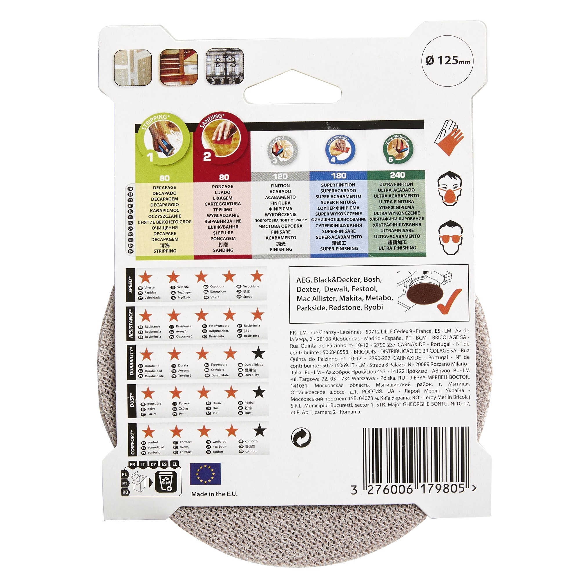 • Зернистость P80 для устранения неровностей и шероховатостей