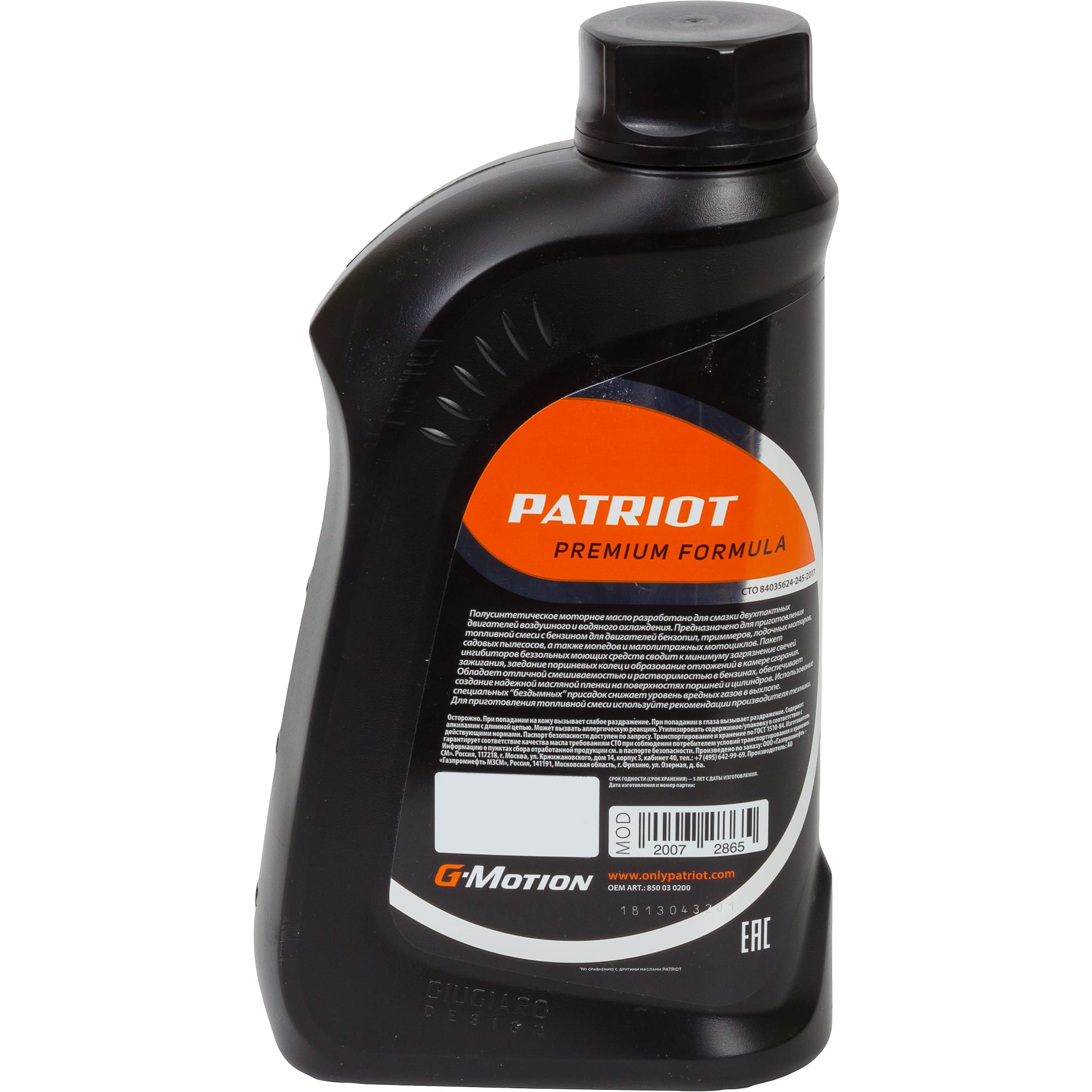 PATRIOT G-Motion 2T EURO - Полусинтетическое масло для двухтактных двигателей 1 л 82041759 STLM-0018246 предоставляется с гарантией 12 месяцев с момента покупки.