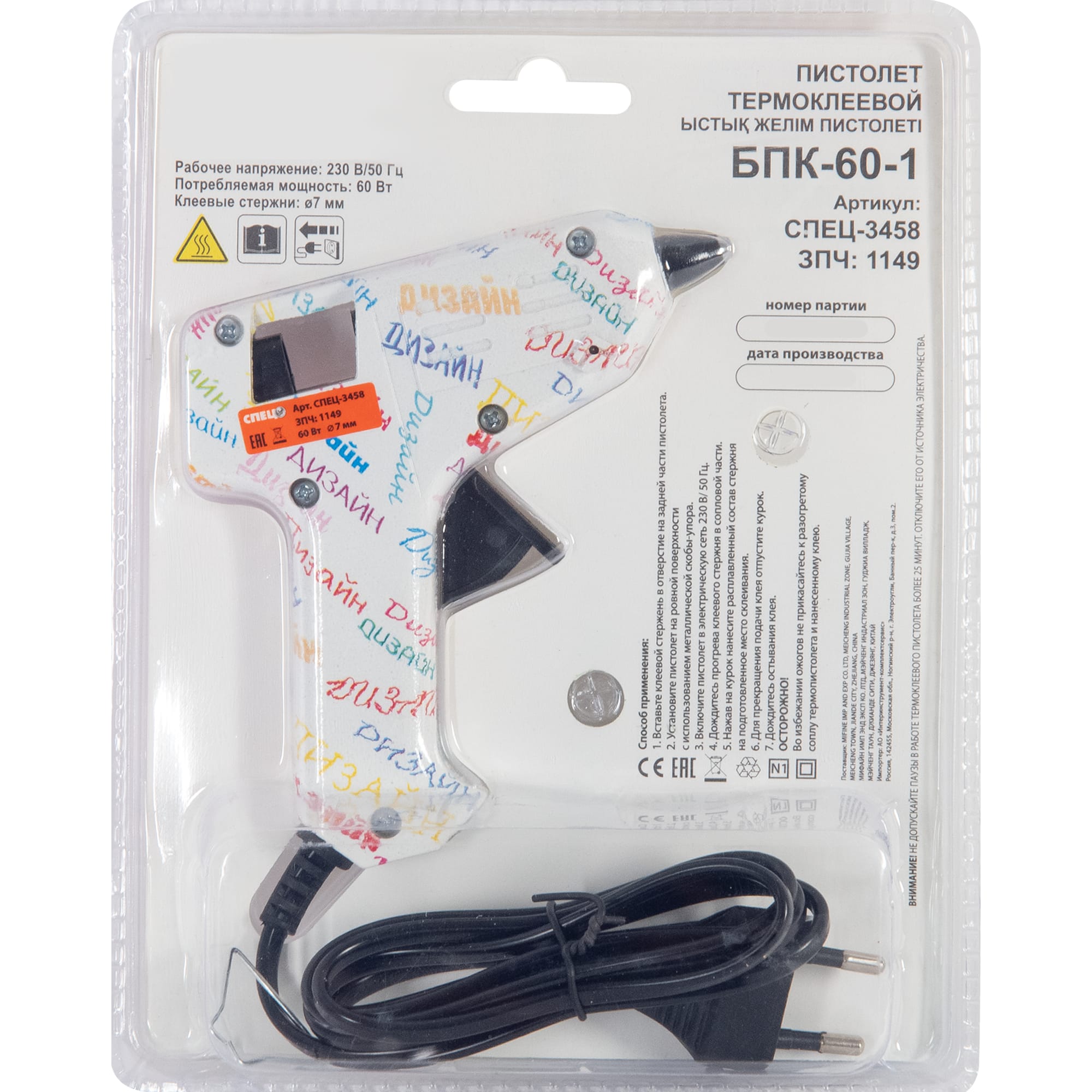 Термоклеевой пистолет СПЕЦ БПК-60 с металлической скобой и клеевыми стержнями 83742238 STLM-0044217 предоставляется с гарантией 12 месяцев с момента покупки.