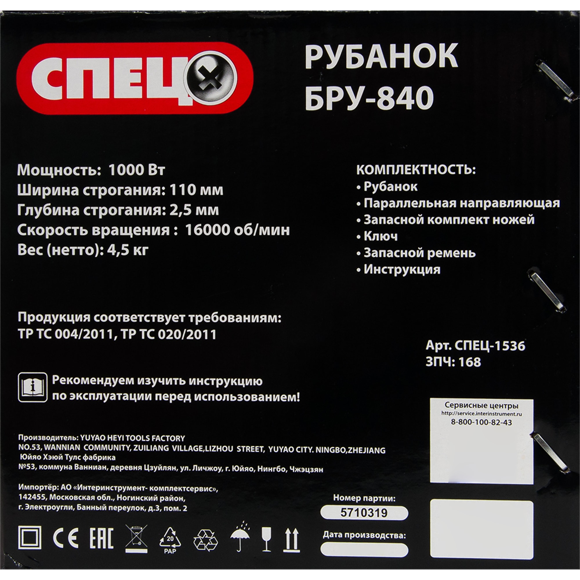Электрический рубанок Спец БРУ-840 для точного выравнивания древесины 82279161 STLM-0023920 предоставляется с гарантией 12 месяцев с момента покупки.