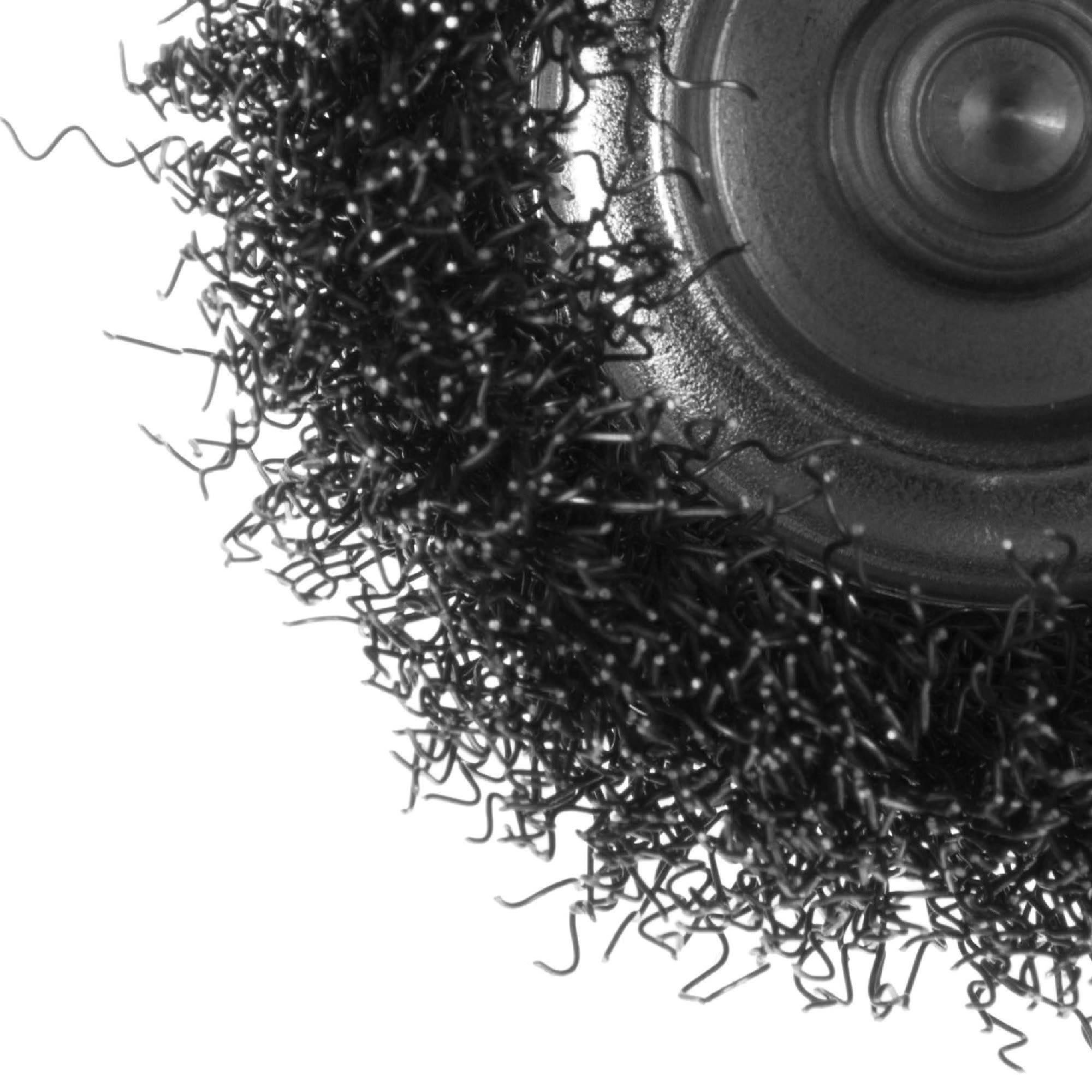 Для достижения наилучшего результата рекомендуется использовать на средних оборотах дрели, равномерно распределяя давление по обрабатываемой поверхности. После работы очистите щетку от остатков металлической стружки.