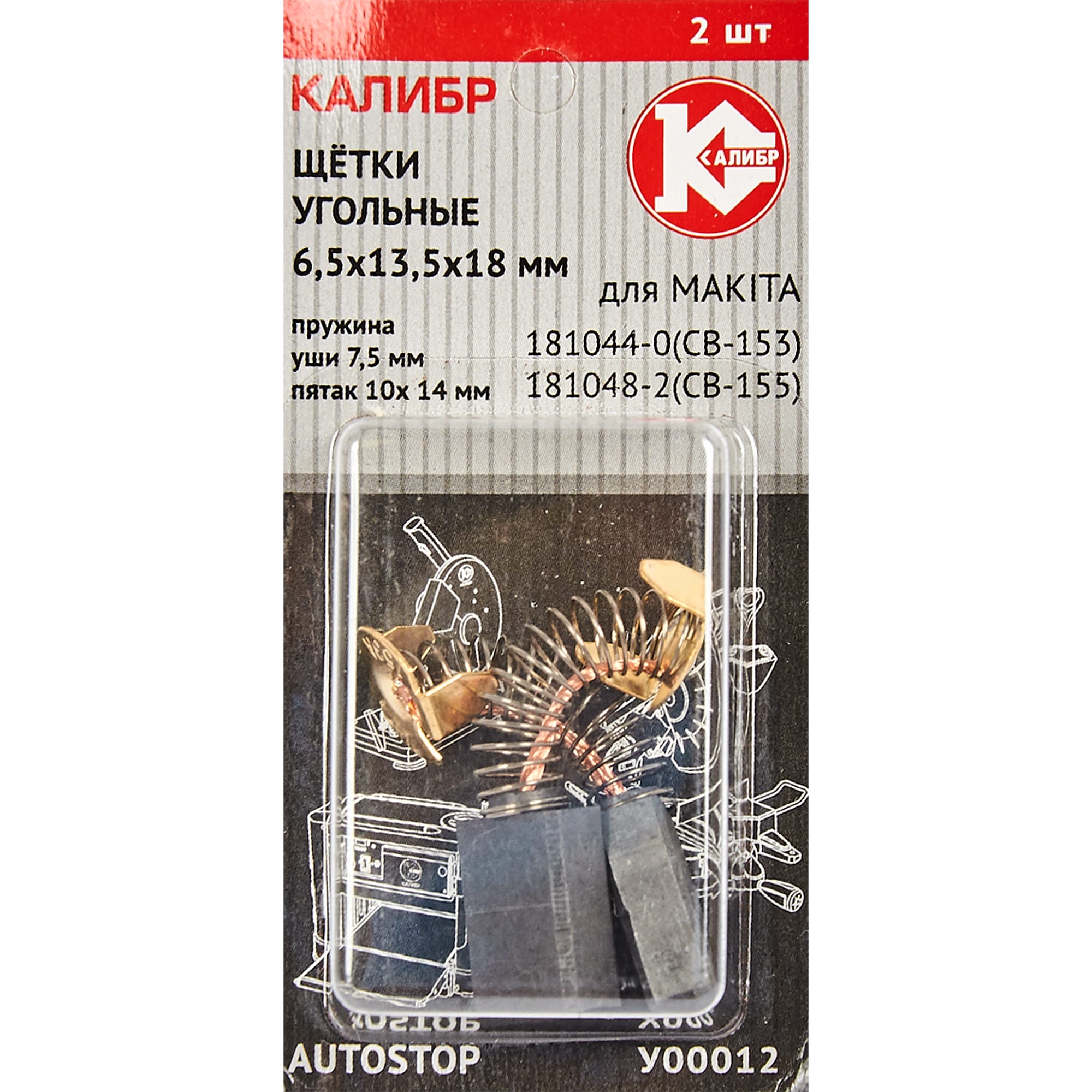 Щетки угольные Калибр У00012 — сменный элемент для двигателей электрических дрелей MAKITA. Соответствуют оригинальной детали 191963-2 CB-303. Полный перечень совместимых инструментов представлен на упаковке.