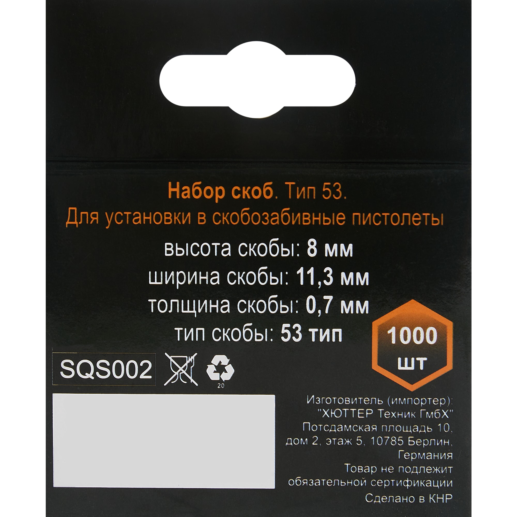 • Высота скобы: 8 мм