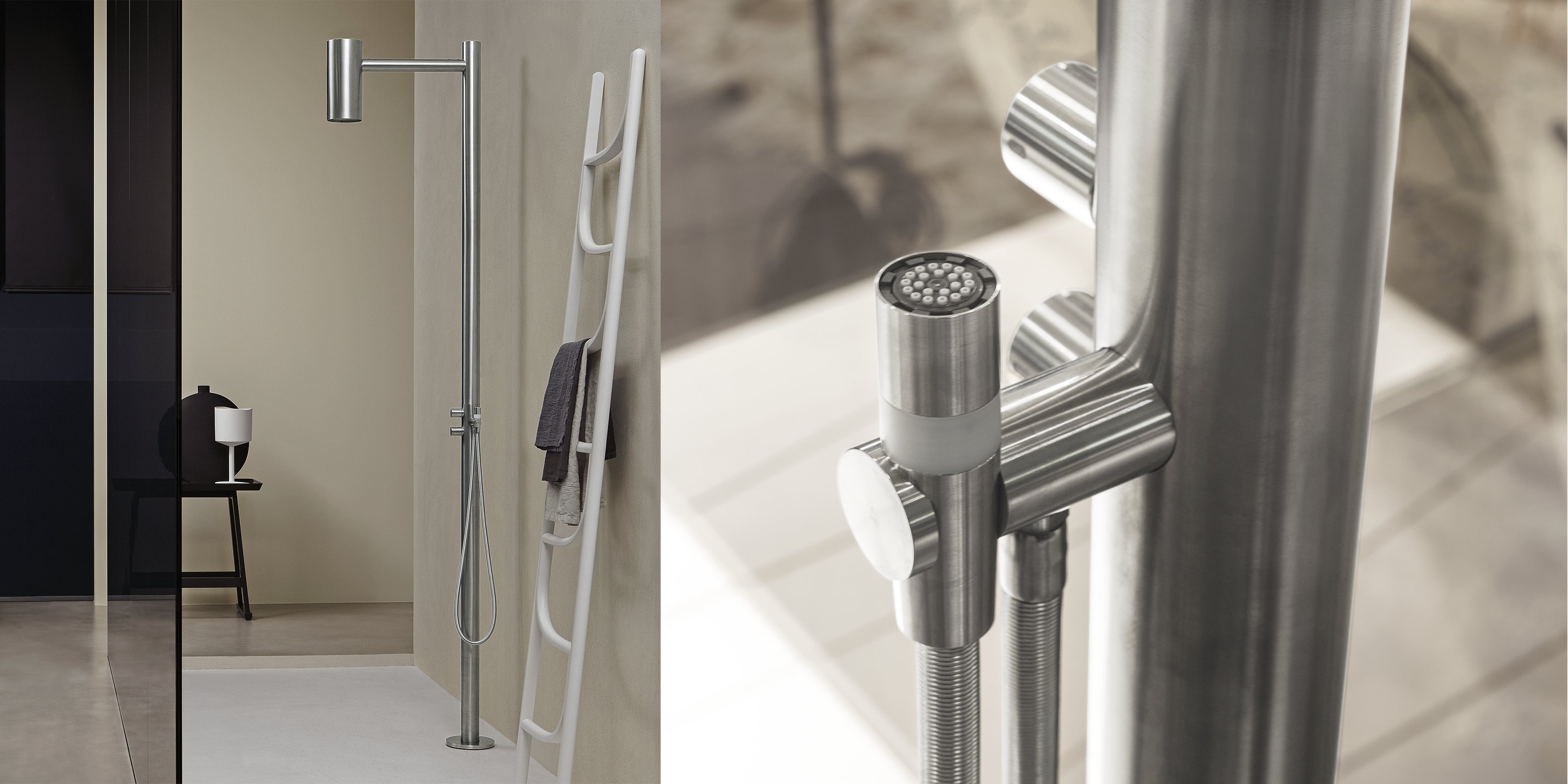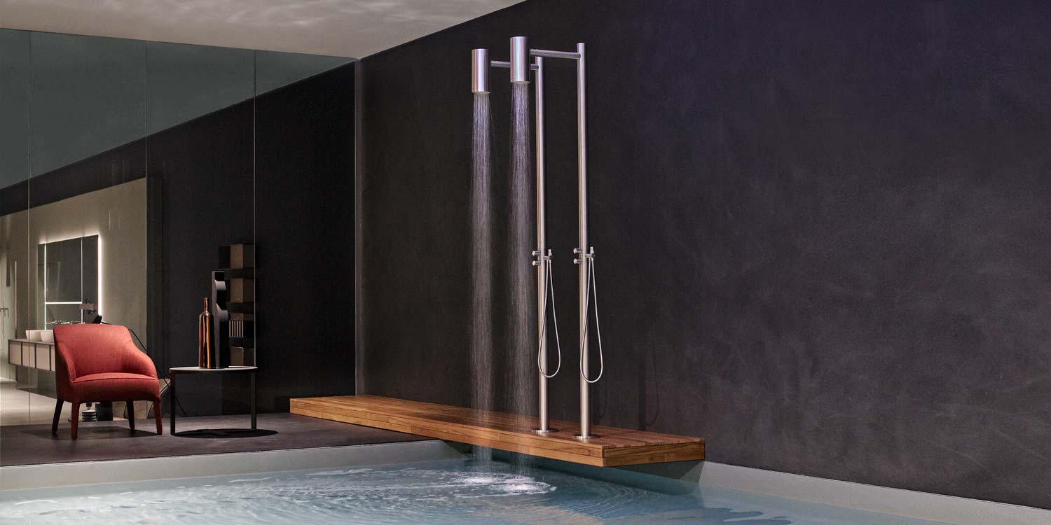 Незаменим по форме, но с мощным резервуаром для сцены, создающим чистый культовый образ, созданный с помощью идеальной композиции форм и чистых объемов. Полностью промышленный проект… & nbsp; Это типичная промышленная установка с открытыми трубами и каналами, которые часто используются на фабриках и которые сегодня, в более современной версии, используются на чердаках или в модных домах. Между городской атмосферой и индустриальной эстетикой. Shawà идеально подходит для использования в помещении или на открытом воздухе и ассоциируется с расслаблением в пространстве с сильным присутствием, впечатляющим, но не громоздким. Версия для улицы может иметь ручной душ с двумя версиями водопада, идеально подходящими для бассейнов.