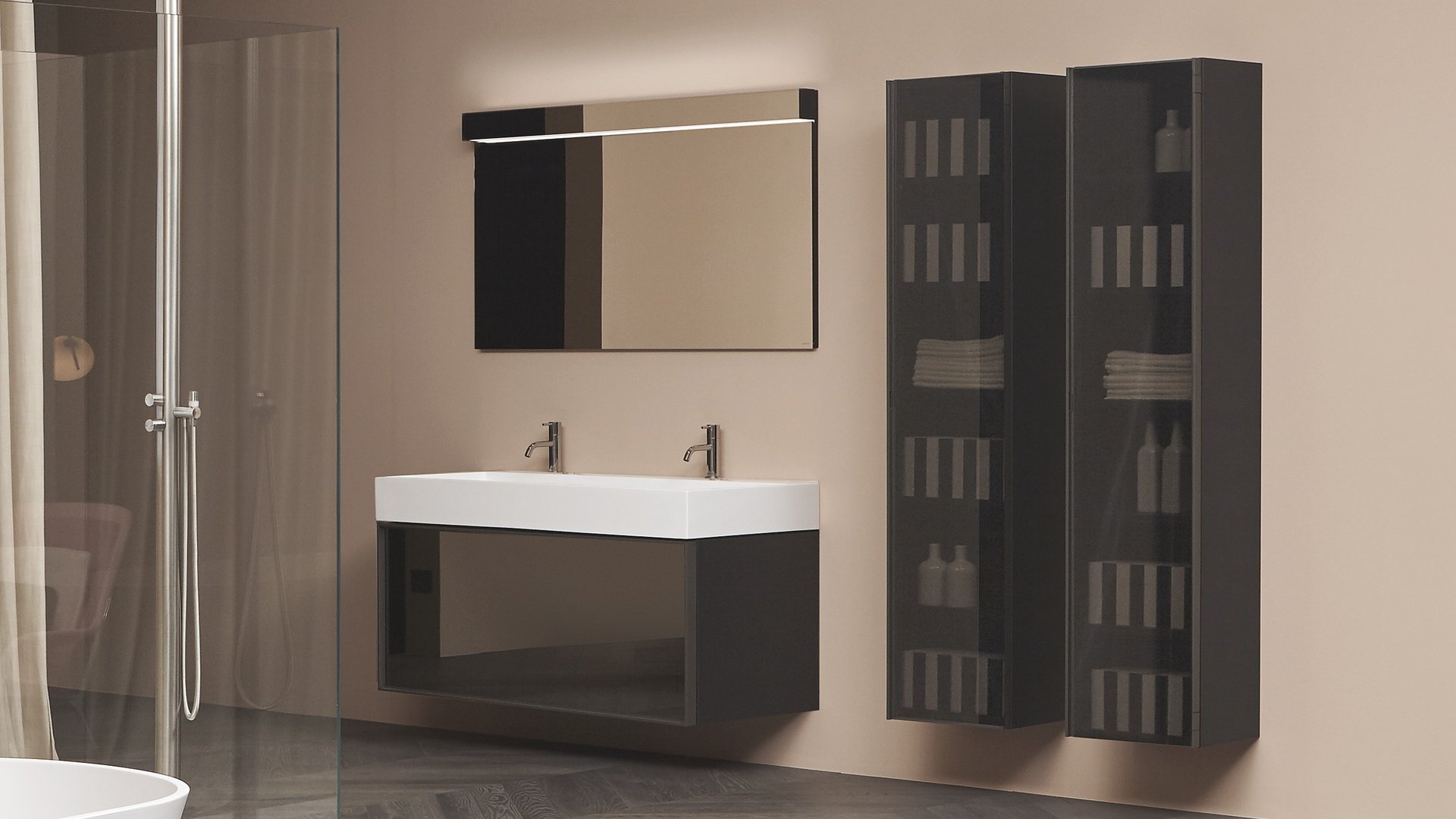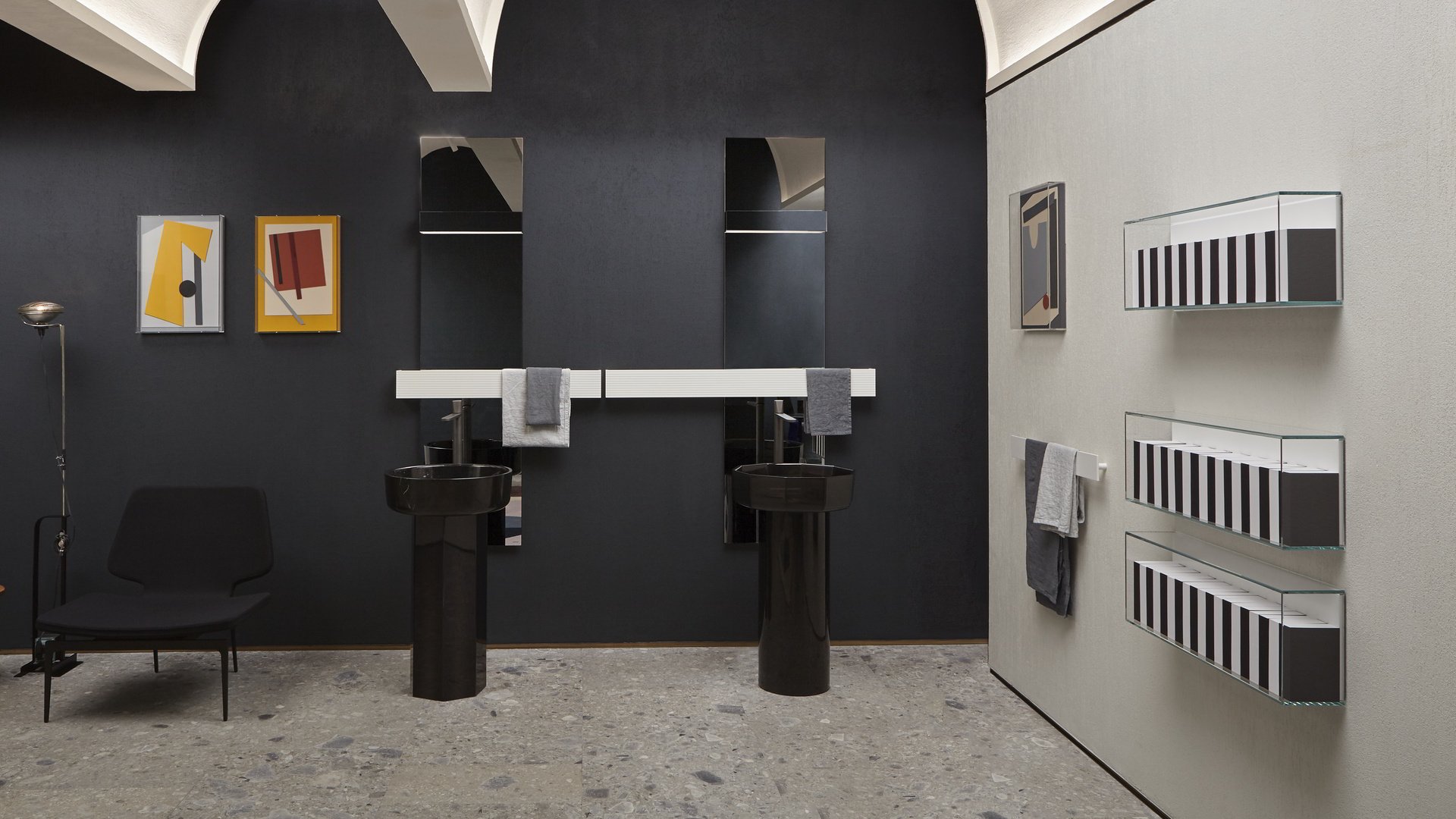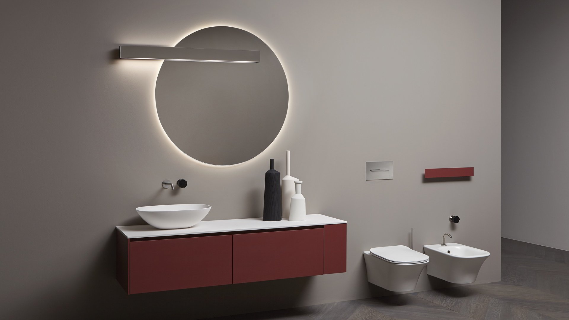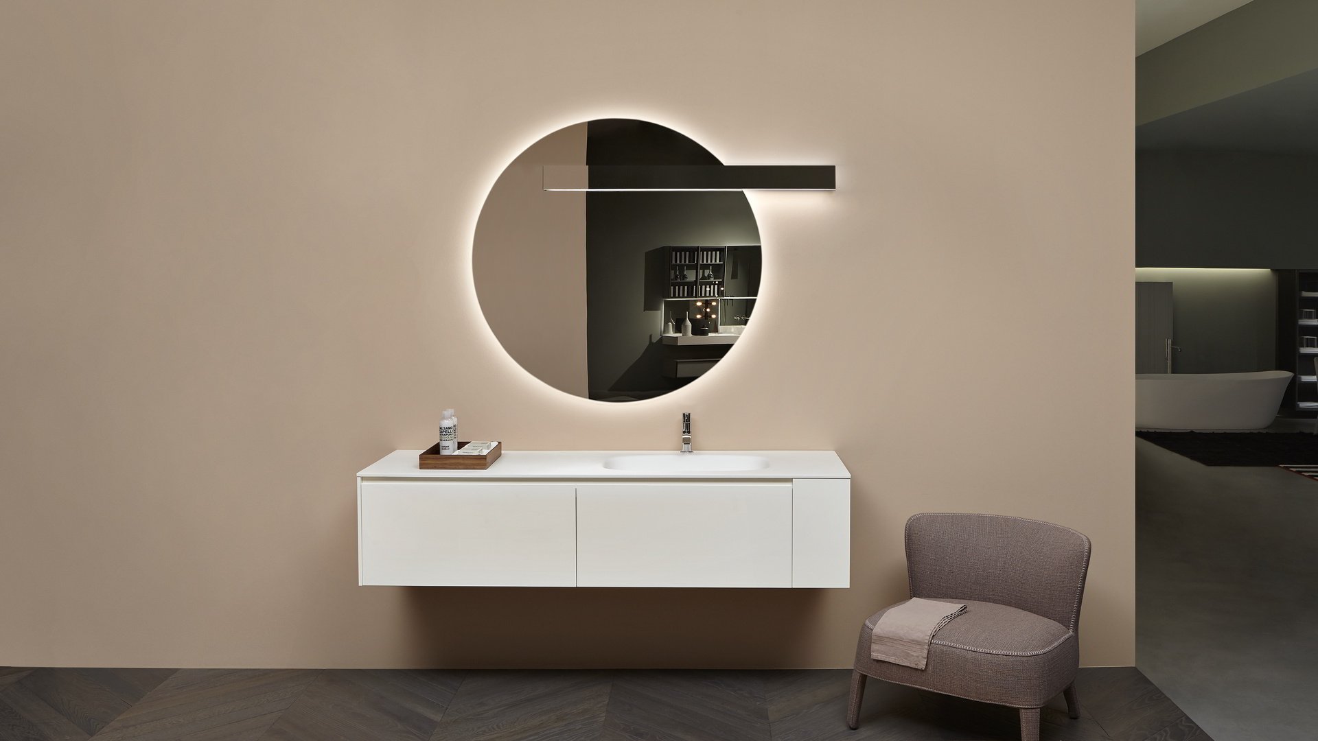 Незаменимый и строгий, способный полностью исчезнуть из поля зрения, когда он не работает, и волшебным образом появляется снова после включения. Lucente - это лампа, сделанная из четкой и минимальной планки, которая благодаря своей зеркальной передней крышке идеально скрывается в самом зеркале. Оснащенная прямым и непрямым светодиодным освещением, она может принимать ту же ширину, что и зеркало, для действительно полной интеграции. Двойная подсветка позволяет создать атмосферный свет вверху и отлично осветить зеркало внизу. Минималистичное решение, в котором главными героями являются свет и отражения.