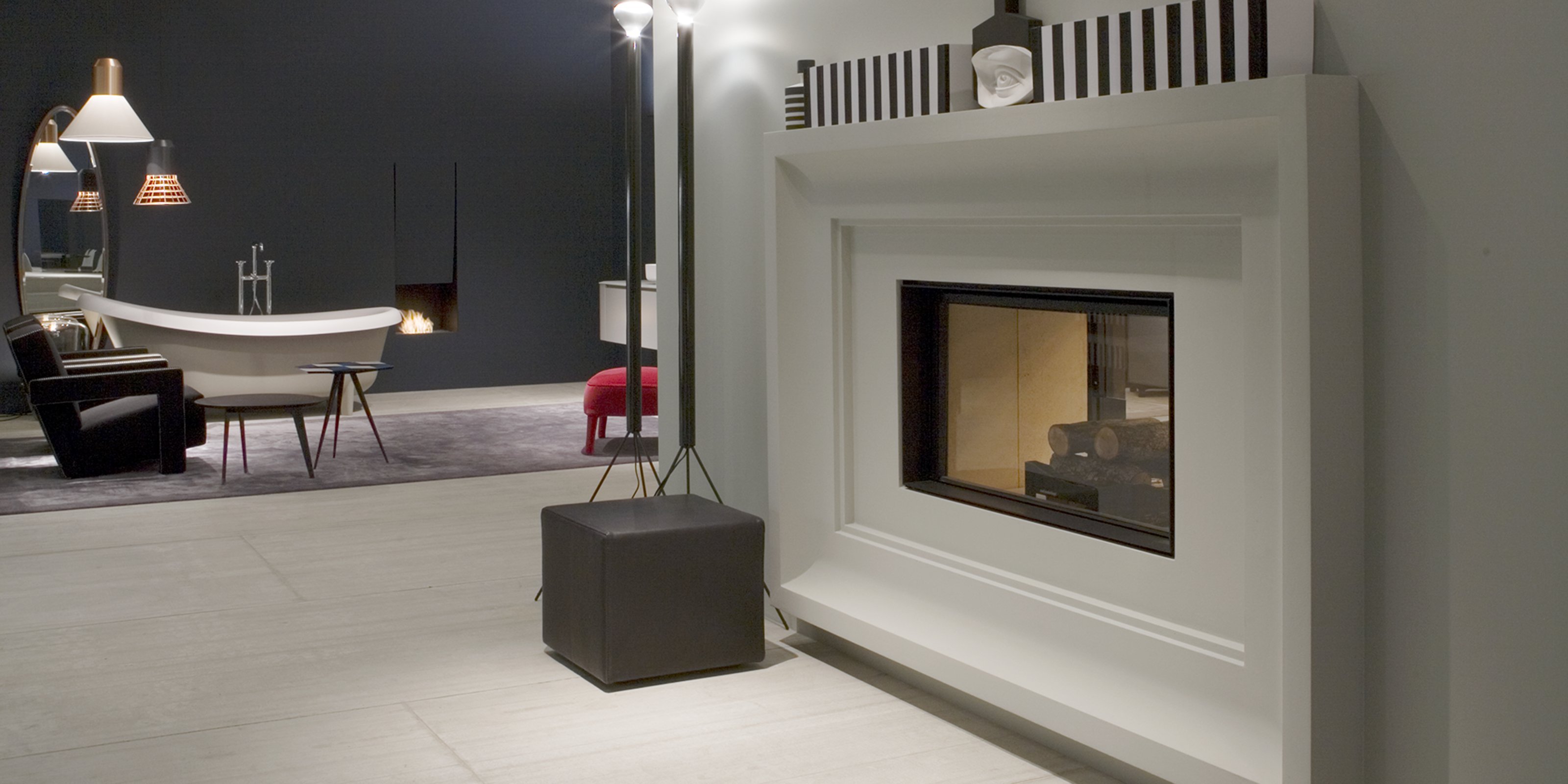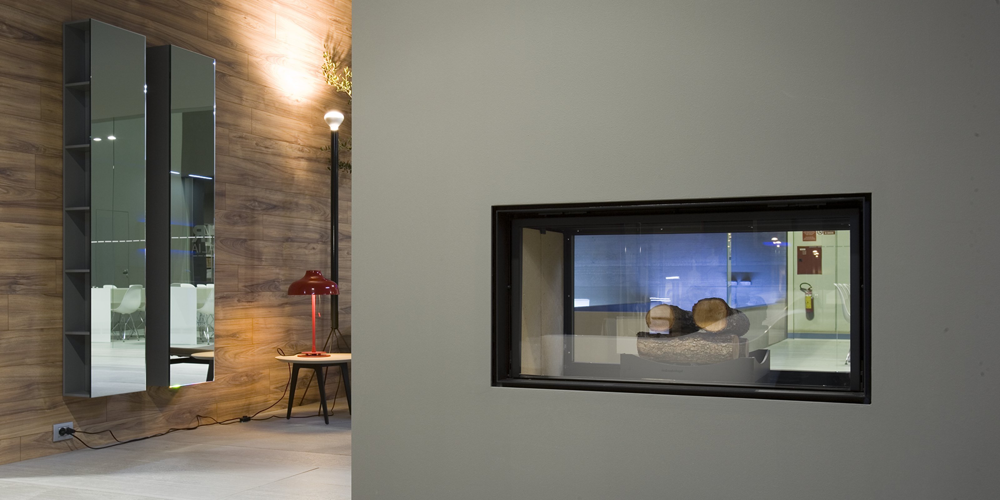 FiloSkema подтверждает центральную роль огня. Дровяной тепловой камин изготовлен на заказ и полностью изготовлен из стали. Камера сгорания закрывается керамическим стеклом с выдвижным отверстием, которое защищает от искр огня и подчеркивает (будучи прозрачным) красоту пламени.