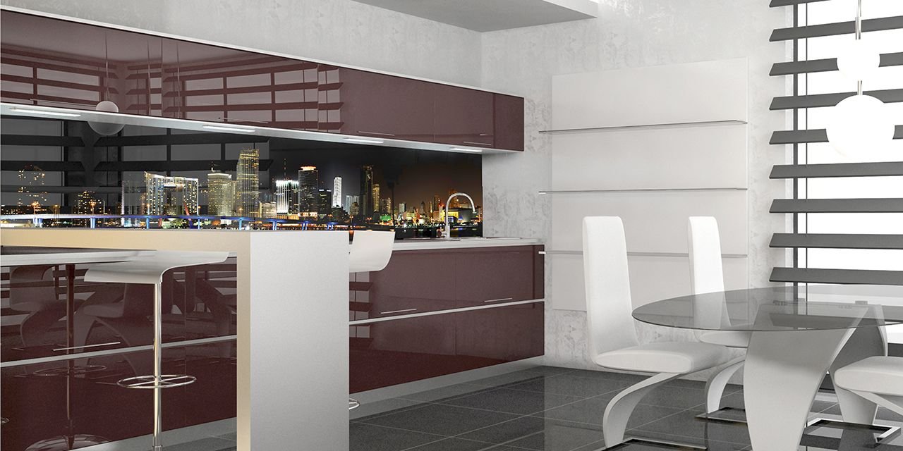 Стекло зеркалит, визуально увеличивая размеры помещения, расширяя пространство. Это ключевой момент в дизайне малогабаритных кухонь и дополнительный плюс в оформлении больших просторных помещений.