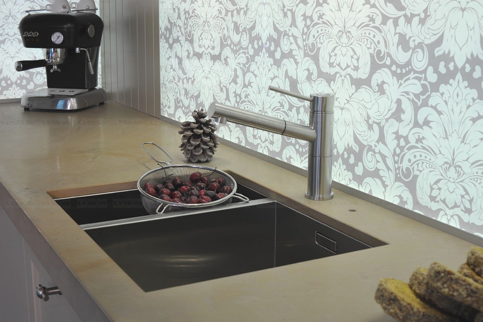 Возможность размещения в зонах сильного нагрева или непосредственно за газовой варочной поверхностью. Лучшая альтернатива неустойчивым к сильному нагреву материалам, таким как искусственный камень.