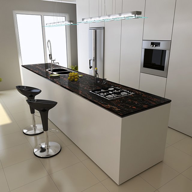 Возможность размещения в зонах сильного нагрева или непосредственно за газовой варочной поверхностью. Лучшая альтернатива неустойчивым к сильному нагреву материалам, таким как искусственный камень.