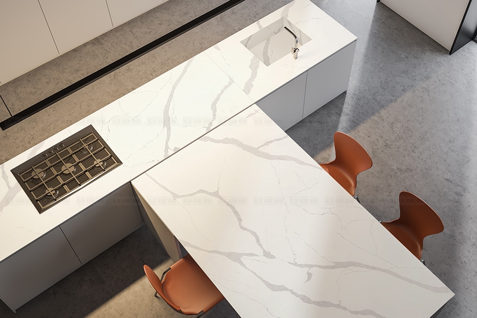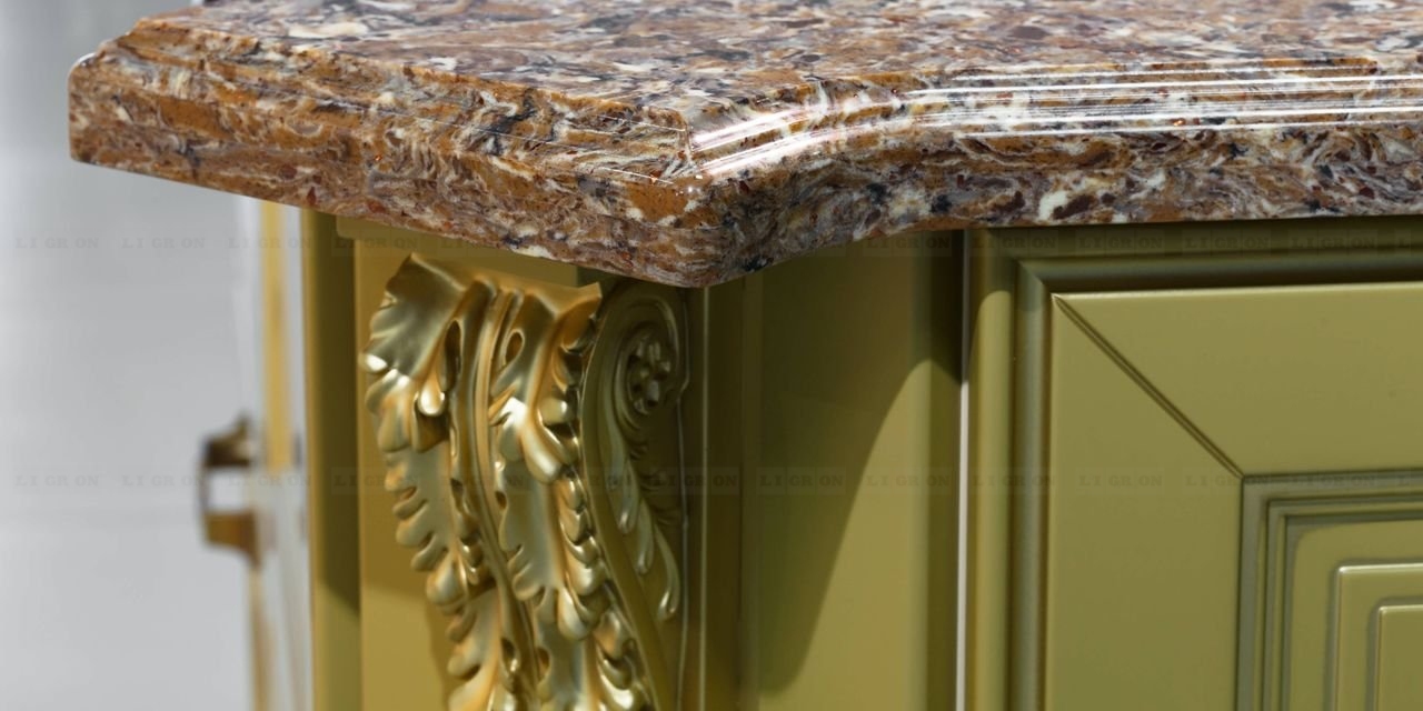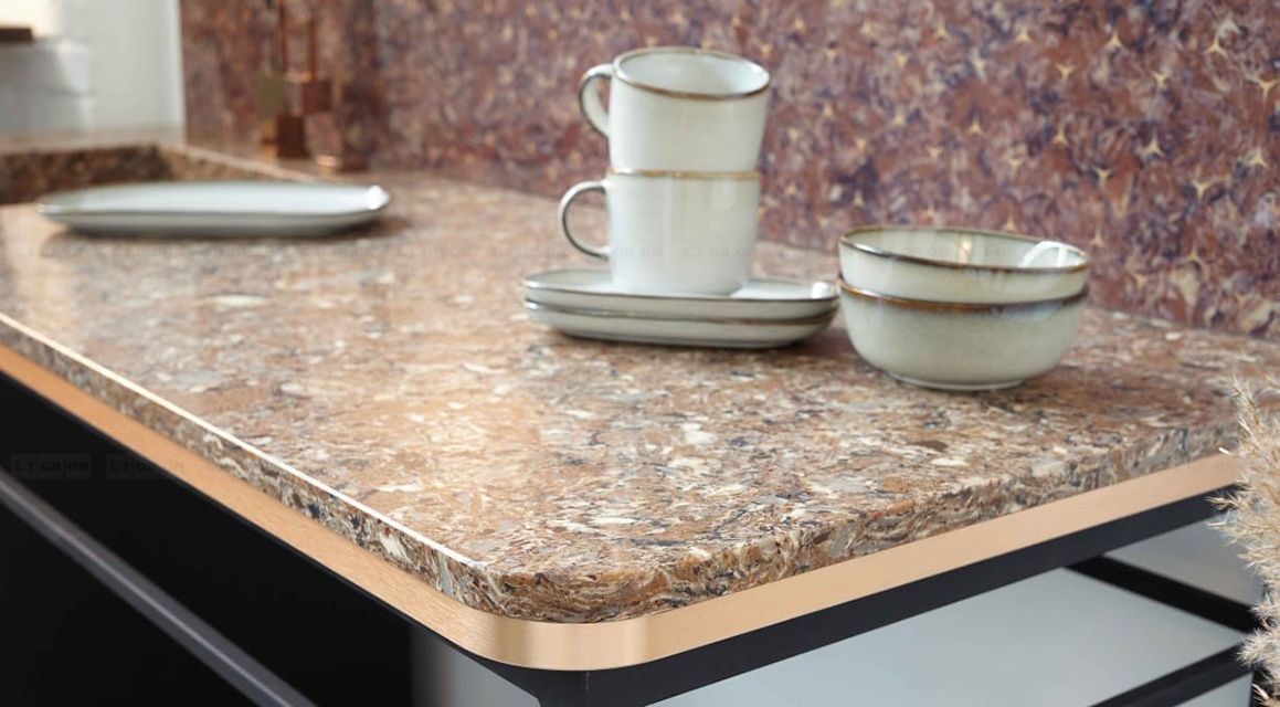 Поэтому имеются ограничения на изготовление столешниц с радиусами. Однако, LIGRON умеет обрабатывать кварцелан и изготавливать из него столешницы и стеновые панели с фигурными классическими профилями.