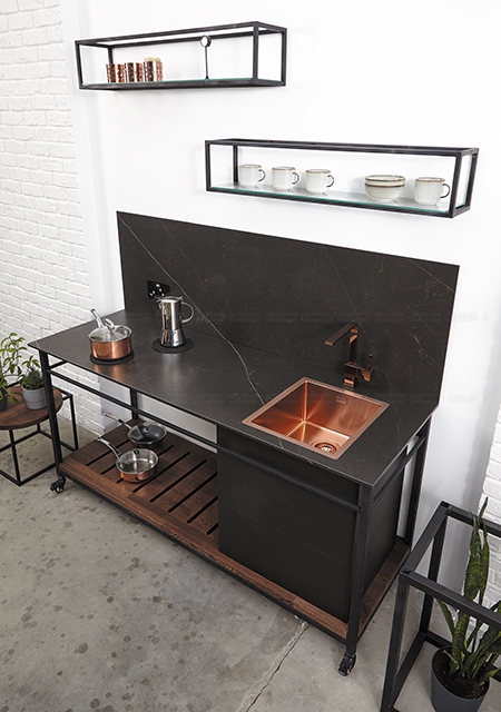 Большой размер и ровная поверхность керамики позволили расширить сферу применения керамики в дизайне и изготавливать из нее столешницы, равных по свойствам которым еще нет.