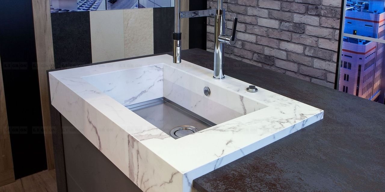 Сегодня с уверенностью можно сказать, что многолетний опыт работы сотрудников, а также самое современное оборудование позволяет компании LIGRON качественно отрабатывать такой твердый материал, как керамика и изготавливать из него изделия высокого уровня. К столешницам предлагаются мойки из керамики, гарантия на которые ― 5 лет.