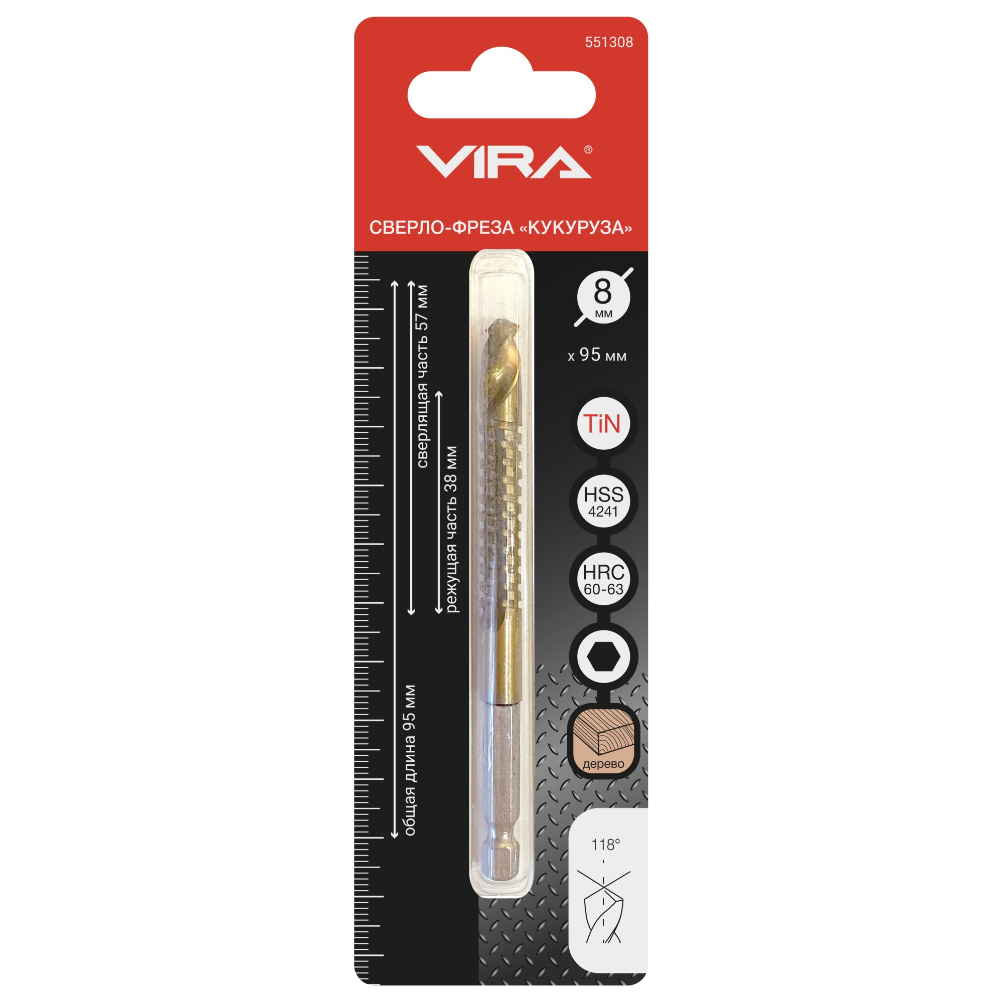 Фрезерное сверло VIRA для дерева и композитов 8×38 мм 85398943 STLM-0062639